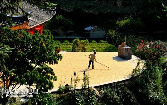 國(guó)家旅游地理 湖北恩施8月22日訊 8月22日,湖北省宣恩縣水田壩村二組農(nóng)民侯慶云在吊腳樓前晾曬玉米。初秋時(shí)節(jié),湖北省恩施土家族苗族自治州宣恩縣農(nóng)民搶抓時(shí)節(jié),對(duì)玉米等農(nóng)作物進(jìn)行收獲晾曬,山鄉(xiāng)家家戶戶忙“曬秋”,到處是一派豐收景象。 /新華社發(fā)(宋文 攝)