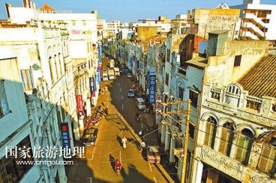 國家旅游地理 海南海口8月24日訊 ??隍T樓歷史文化街區(qū)(簡稱騎樓老街),是??谧罹咛厣慕值谰坝^。2009年6月10日,首屆“中國歷史文化名街評選推介”活動在北京揭曉,??隍T樓老街榜上有名。海口騎樓老街以其唯一性、獨特性榮獲首批十大“中國歷史文化名街”稱號。從2010年開始,海口市已啟動騎樓老街改造項目。海口騎樓老街已成為了解??诔鞘袣v史的活畫冊。