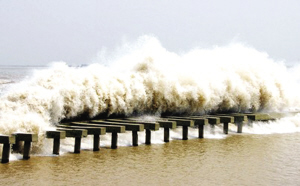 在蕭山美女壩和九號(hào)壩處,海塘轉(zhuǎn)彎,潮水沖擊丁字壩和江堤,同樣能形成“回頭潮”;錢塘江由西折向南面,到九溪珊瑚沙一帶,同樣有一條長長的江堤伸入江中,雖然潮水到達(dá)這里開始減弱,但當(dāng)潮水方向與風(fēng)向一致時(shí),推波助瀾,潮浪也會(huì)很大。