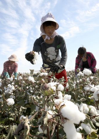 9月24日,幾名拾花工在新疆哈密現(xiàn)代農(nóng)業(yè)園區(qū)棉區(qū)采摘棉花。