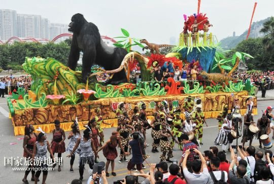 國家旅游地理 廣西柳州10月1日訊 9月30日,一輛巡游的花車經(jīng)過廣西柳州市駕鶴路。 當日,2013中國柳州國際水上狂歡節(jié)以一場“狂歡大巡游”拉開帷幕。10輛造型各異的花車和國內(nèi)外各具特色的演藝團體為市民和游客帶來一場歡樂盛宴。