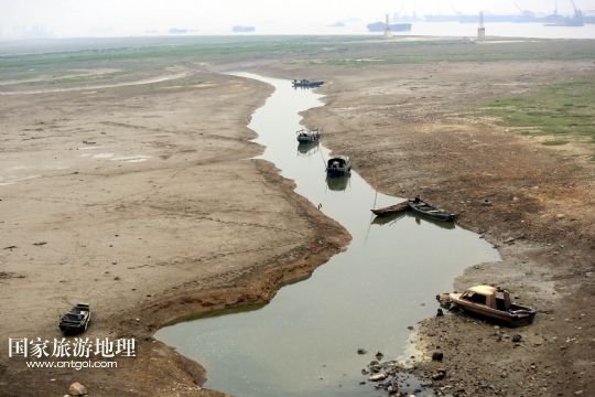 國家旅游地理 江西九江10月19日訊 10月19日,大批船只??吭诘退坏嫩蛾柡鞫疾俏鞲劭凇.斎?,我國最大淡水湖鄱陽湖跌破10米的枯水位大關(guān),提前進入枯水期,這將對鄱陽湖濕地植被生長以及候鳥與野生魚類越冬造成影響。江西省水文局負責人介紹,星子站水位在10米以下就意味著鄱陽湖進入枯水期。受近期江西境內(nèi)降雨偏少、入湖水量減少等因素影響,19日10時,鄱陽湖星子站水位跌至9.98米,比同期多年均值偏低約4米。