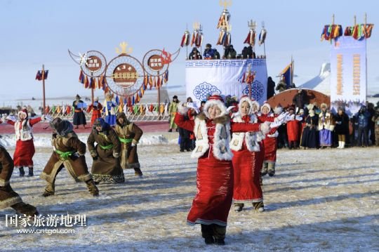 國家旅游地理 內(nèi)蒙古呼倫貝爾12月23日訊 12月23日,演員在冰雪那達(dá)慕上表演舞蹈。當(dāng)日,內(nèi)蒙古第十四屆冰雪那達(dá)慕暨巴爾虎草原祭火文化節(jié)在內(nèi)蒙古自治區(qū)呼倫貝爾市陳巴爾虎旗開幕,吸引了約2萬人參加。本屆冰雪那達(dá)慕將冰雪主題與獨特的民俗風(fēng)情巧妙結(jié)合,活動包括祭祀儀式、實景表演、歌舞演出和傳統(tǒng)體育競技等。 /新華社記者 金宇 攝
