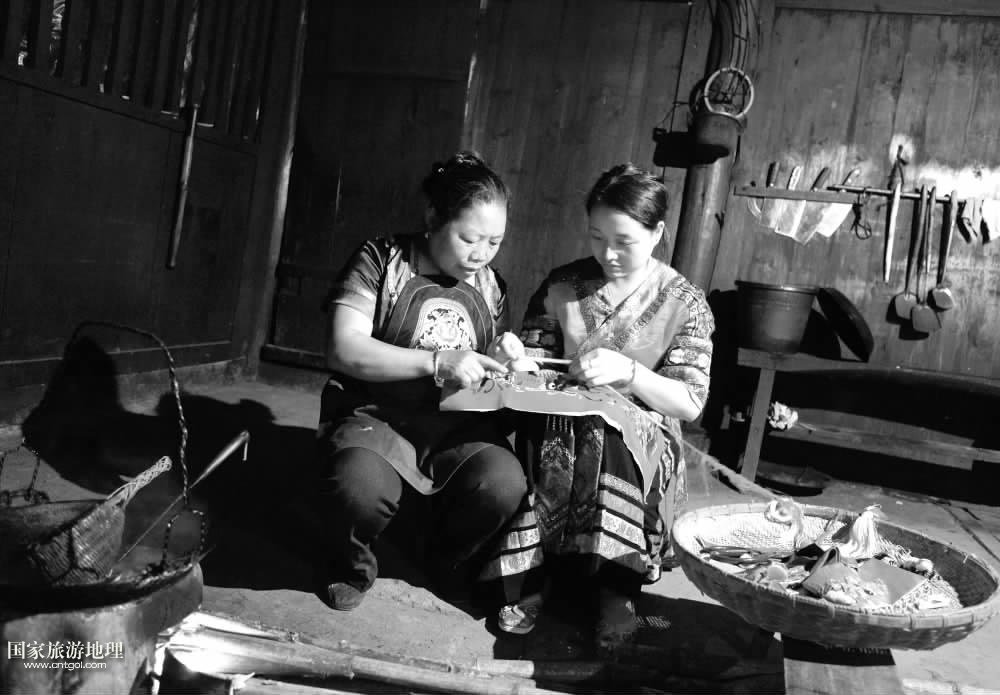 獨具風情的地理位置并不能為苗繡的保存設防 ,在伍前金眼中 ,盡管臘里村遠離都市 ,但族人已被漢化。她說:現(xiàn)在居民從來不穿苗服了 ,也不再講苗語。”