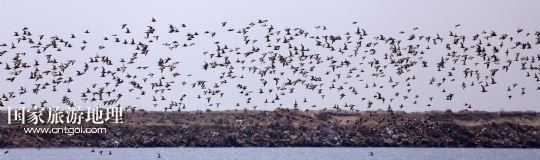 國(guó)家旅游地理 遼寧丹東5月2日訊 這是鳥群在空中飛翔(5月1日攝)。日前,遼寧省丹東市鴨綠江口濕地自然保護(hù)區(qū)迎來大批候鳥停留覓食。經(jīng)過中外鳥類專家在鴨綠江口濕地大約40公里范圍內(nèi)7個(gè)分點(diǎn)的同步調(diào)查發(fā)現(xiàn),共36種近14萬只鳥類云集于此,這些候鳥在鴨綠江口濕地經(jīng)過約1個(gè)月的休整、補(bǔ)充體能后,將繼續(xù)北上到俄羅斯西伯利亞和美國(guó)的阿拉斯加等地繁育后代。