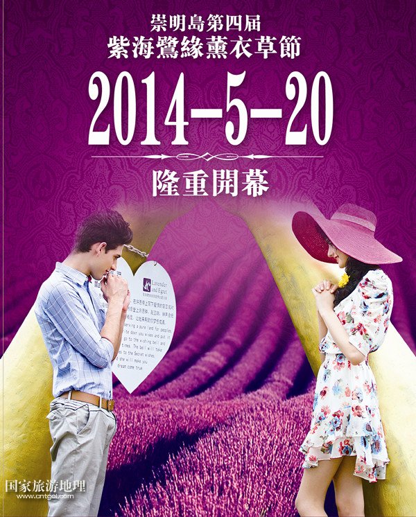 5月20日至6月20日,為期1個(gè)月的2014上海崇明島第四屆薰衣草節(jié)將在崇明島舉行,市民不用去法國(guó)普羅旺斯就可欣賞到紫色花海的美景了。此次活動(dòng)地點(diǎn)設(shè)在中國(guó)最美麗的“花園”——上海崇明島上的香草種植園紫海鷺緣浪漫愛(ài)情主題公園內(nèi)。