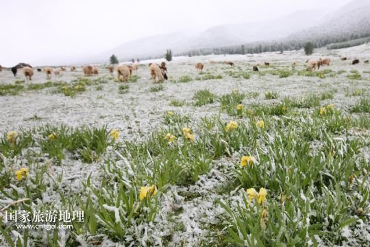 國(guó)家旅游地理 新疆哈密5月31日訊 5月31日,新疆哈密一位牧民在雪中放牧。當(dāng)日,受冷空氣影響,新疆哈密北部沿天山一帶出現(xiàn)了降雪降溫天氣,給五月的天山披上銀裝。 /新華社發(fā)(普拉提 攝)