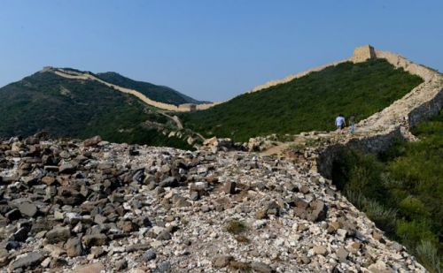 然而在自然風蝕的作用下,長城在緩緩消逝,更加沉痛的事實是長城保護還面對著“天災人禍”、利益糾紛、保護性開發(fā)不當?shù)确N種問題,扒墻盜磚、平山開路等行為直接“造就”了如下這些情景。